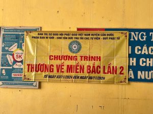 Ngày 03/11/2024, tiếp tục hành trình thiện nguyện chung tay vì cộng đồng, Ban Trị sự GHPGVN huyện Cần Đước kết hợp cùng Phân ban Ni giới GHPGVN huyện Cần Đước, Chư tôn đức Tăng, Ni Trụ trì các cơ sở Tự viện cùng Phật tử trong huyện Cần Đước đã đến thăm hỏi, động viên và trao quà cùng bao thư đến người dân bị ảnh hưởng bởi cơn bão số 3 tại Làng Nủ, xã Phúc Khánh và 4 xã lân cận thuộc tỉnh Lào Cai; thời gian từ ngày 03 đến ngày 06 tháng 11 năm 2024.
